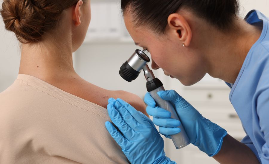 医師が視診とダーモスコピーを使ってほくろの状態を細かく確認します。