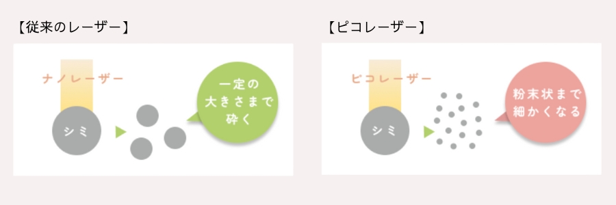 一方、ピコレーザーはピコ秒(1兆分の1秒)というさらに短い単位で照射する技術へ進化しています。