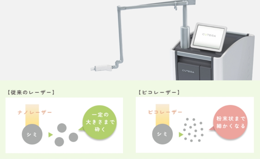 エンライトンSRはキュテラ社が開発した機器で、ピコ秒(1兆分の1秒)という極めて短いパルス幅で照射できることが特徴です。